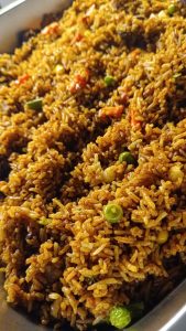is a vibrant and flavourful fusion dish that marries the culinary traditions of both Africa and the Caribbean. This dish combines the hearty flavours of tender beef with the aromatic spices of the Caribbean while incorporating the stir-frying technique common in many African and Caribbean kitchens. The result is a deliciously spiced fried rice with a perfect balance of tender beef, fresh vegetables, and savoury seasoning. It’s a wonderful dish that can be served as a main or as a side.