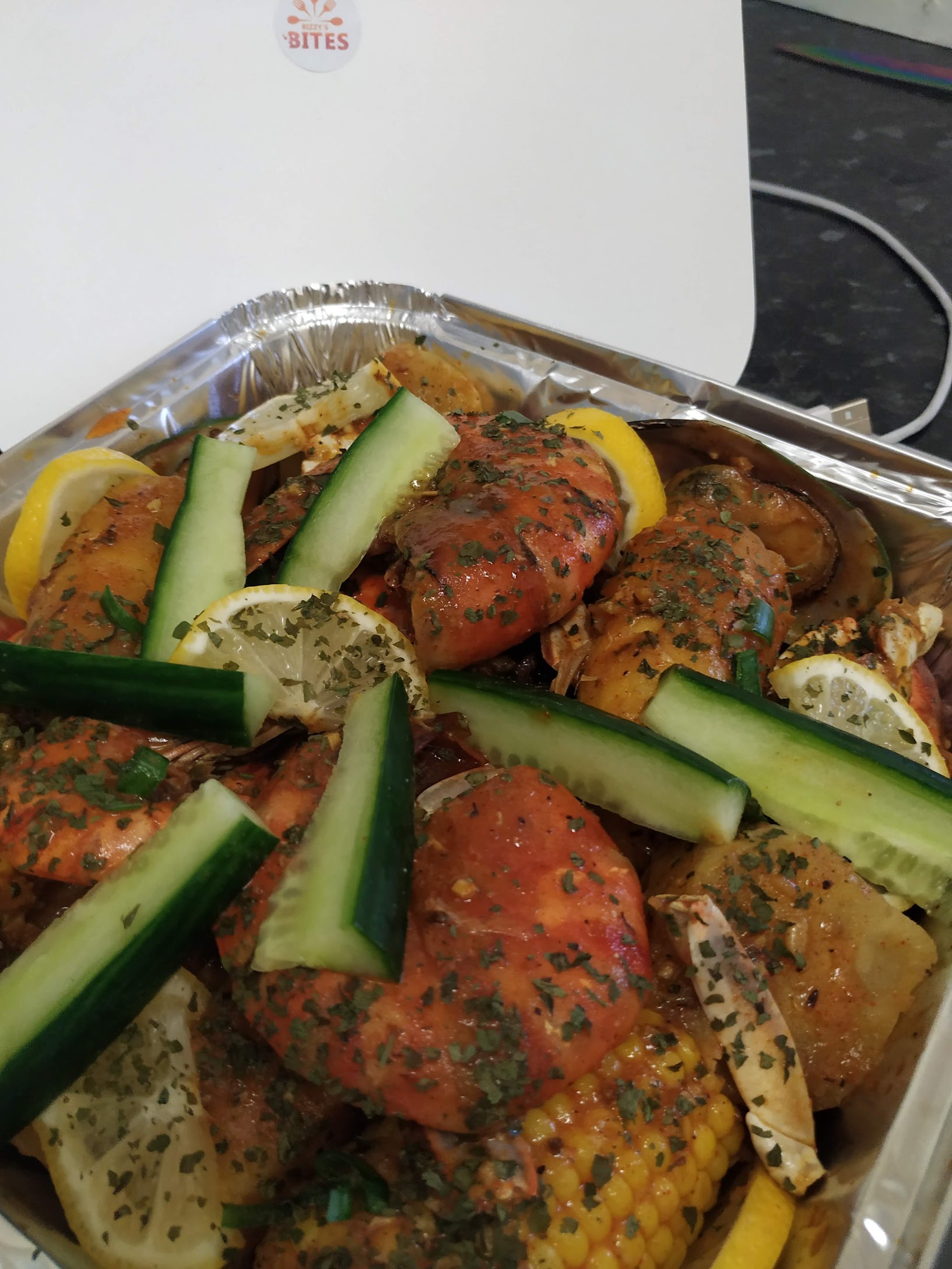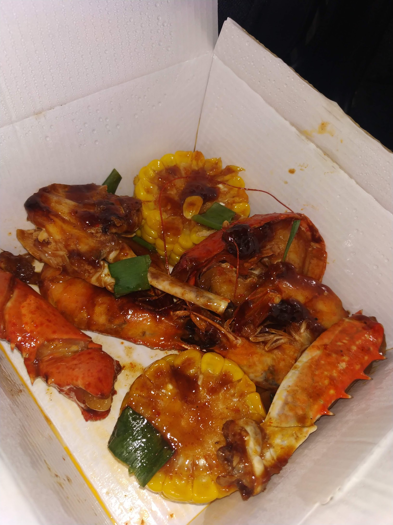 contains lobster tail, prawn, crab, sweetcorn, plain rice, Mac & cheese and salad